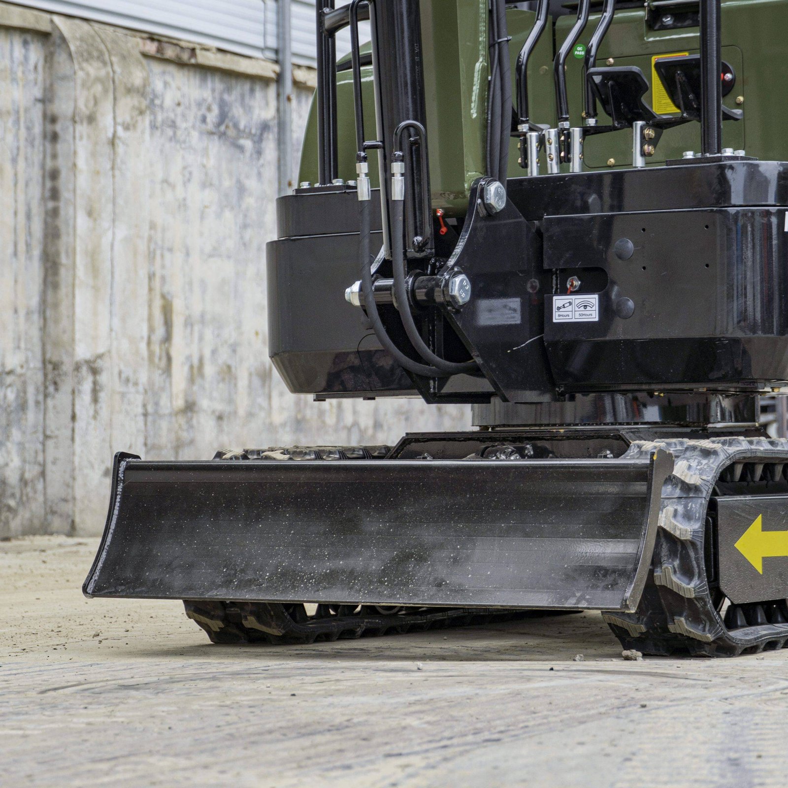 The bucket can hold 0.025 cubic meters of material, and the bull dozer blade can dig down to 270 mm, making it easy to use for any digging, drilling, or bull-dozing work.