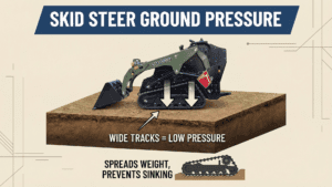 Every skid steer applies a certain amount of weight to the ground through its tires or tracks. If that pressure is too high for the soil to handle, the machine begins to sink, creating deep ruts and reducing efficiency. Learning how ground pressure affects skid steer performance can help you avoid these problems and operate more safely on soft or uneven terrain.